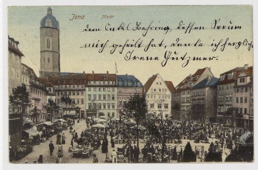 Auch die spätere Opernsängerin Irene Gutzmer (geb. 1894) wurde geheilt. Kurz und knapp schreibt sie auf die Vorderseite einer kolorierten Postkarte vom Jenaer Marktplatz: „Dem Onkel Behring, dessen Serum mich geheilt hat, danke ich herzlich“. Wie die kleine Ebba Othman stammte auch Irene aus „gutem Elternhaus“.
