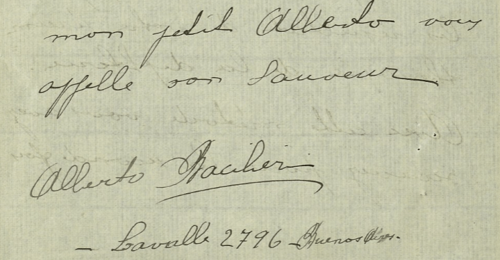 Oft wurden regelrechte Lobeshymnen angestimmt, um dem berühmten Marburger Professor zu danken. Das ist verständlich, ging es doch um das Leben eines geliebten und schutzbedürftigen Kindes. Zu Herzen geht der auf Französisch verfasste Brief einer Mutter aus Buenos Aires, die schreibt: „[M]on petit Alberto vous appelle son Sauveur.“ So wird es die glückliche Mutter es empfunden haben! Behring war der „Sauveur“, der Retter ihres kleinen Sohnes. Dem zweiseitigen Brief ist das Foto des fünfjährigen Kindes im Matrosenanzug beigeheftet.[6]